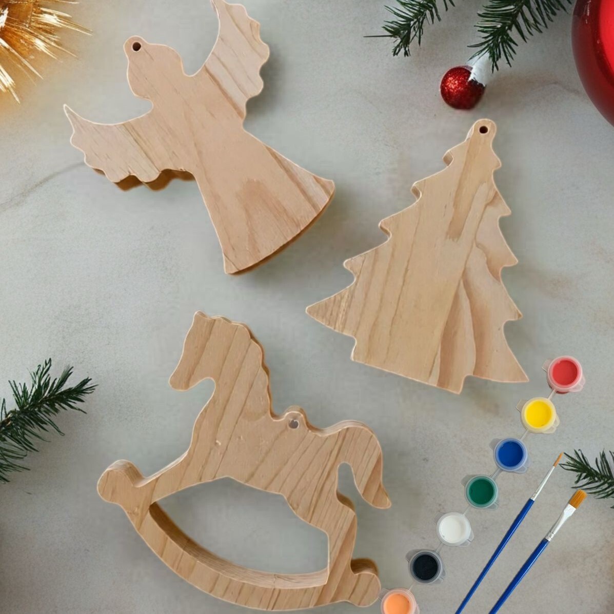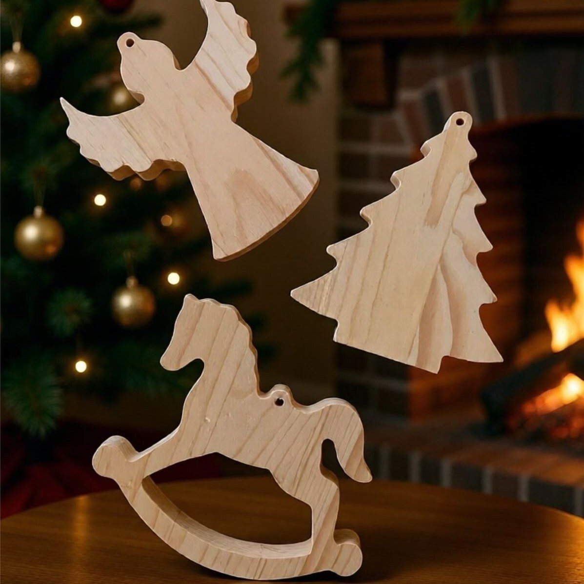 Заготовки вырезаны из массива дерева, материал сосна. Размеры: ангел - 11х9,5 см, лошадка - 10,5х13 см, ель - 11,5х10 см. Толщина 1,8 см. Фигурки выпилены на станке, обработаны вручную. Ваш полет фантазии по декорированию безграничен. Можно покрасить акриловыми красками, сделать декупаж, брашировать, что сделает этот процесс увлекательным как для детей, так и для взрослых.