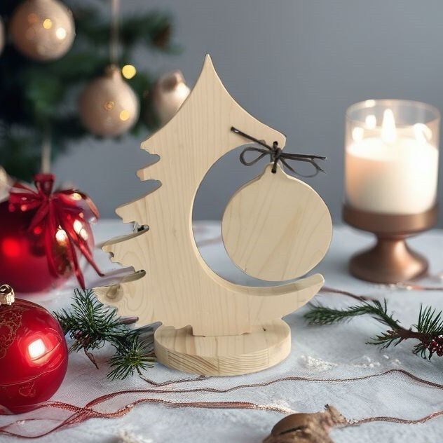 Заготовка вырезана из массива дерева, материал сосна. Размер 25,5х20 см, диаметр шарика 9 см, толщина 1,8 см. Фигурка выпилена на станке, обработана вручную.